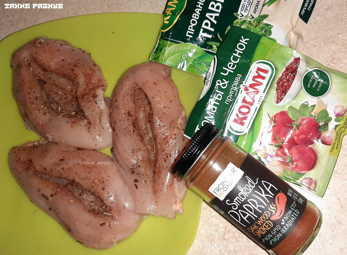 Всем доброго времени суток. Меня зовут Юлия. Я продолжаю худеть. Здесь я публикую свой рацион питания и рецепты с подсчетом КБЖУ. Когда сидишь на диете, то чаще всего в рационе бывает куриная грудка. Многие потом на нее смотреть не хотят. Я же люблю куриную грудку, потому что знаю 1000 и 1 рецепт вкусного блюда из этого продукта. Сегодня хочу поделиться с вами рецептом грудки , запеченной с брокколи, зеленым горошком, томатами и сыром. Отличная калорийность и много белка в порции позволяет чаще добавлять ее в свой худеющий рацион. Нам понадобится: У меня получилось 3 филе, каждое по 150 гр Надрезаем филе, делая кармашки, внутри тоже прорезаем, чтобы кармашек был глубже. Смазываем любимыми специями. Даем промариноваться 20-30 мин. В это время готовим начинку : брокколи мелко нарезаем, смешиваем с горошком, желтком, солим, я еще добавила лук сушеный ( можно перебить блендером, тогда начинка будет более однородная). С томатов снимаю кожицу. Сыр натереть на терке. Начиняем грудки-кармашк