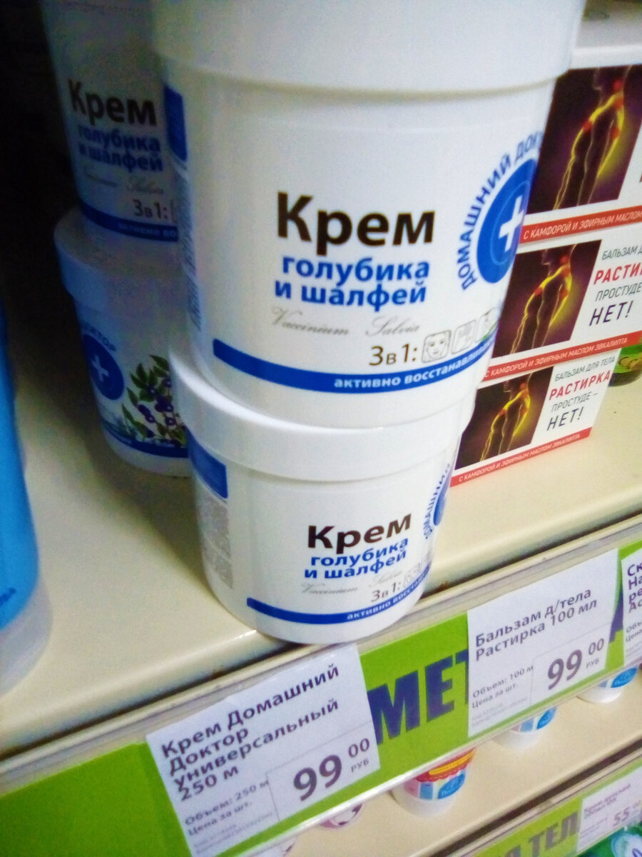 КРЕМ "ДОМАШНИЙ ДОКТОР",по цене 99 рублей. Голубика и Шалфей.Универсальное средство для ухода за кожей лица,шеи и любой другой части тела.Только для наружного применения.Питает и восстанавливает кожу,шалфей-придаст здоровый вид,а голубика питает витаминами.