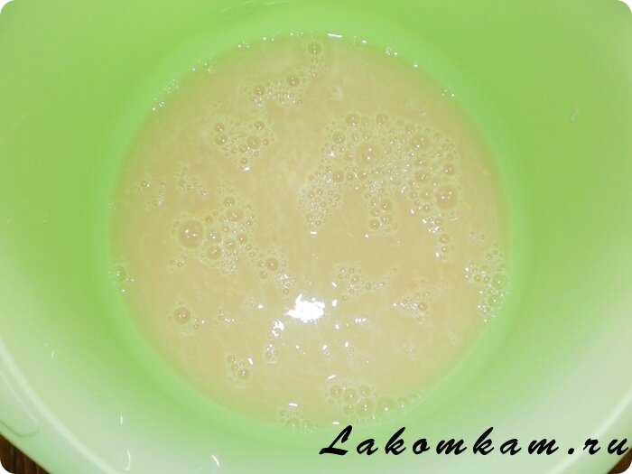 Приготовление постного рулета с маком. В тёплой жидкости растворяем дрожжи, соль и сахар.