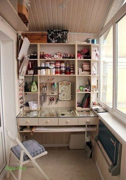 Любите вышивать и не знаете, как спрятать по всему дому ниточки и коробочки? Есть идея! Конечно же, необходимо, чтобы балкон был утеплён, потому что ваши вышивочки и ниточки не повердились.