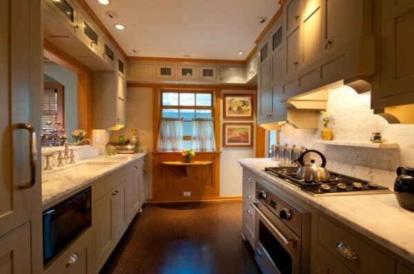 Маленькая кухня – бич большинства современных домов. Хозяева сталкиваются с проблемой расстановки мебели и техники на небольшой площади и без нестандартных решений тут зачастую не обойтись. Кухонные столы для маленькой кухни не стали исключением. Потребуется приложить немало усилий, чтобы выбрать оптимальный вариант для скромной площади. Какие бывают столы? Прежде чем выбирать стол для маленькой кухни, подумайте о том, какова площадь помещения, сколько у Вас домочадцев и насколько часто к Вам приходят в гости. Ответы на эти вопросы помогут сориентироваться и подобрать оптимальный вариант. Кухонные столы по своей форме могут быть: Прямоугольные столы – золотая классика, но, к сожалению, не самый выигрышный вариант для маленькой кухни, так как они воруют чересчур много места. Намного выгоднее будет предпочесть квадратный стол. Круглые и полукруглые столы отлично подходят для маленькой кухни хотя бы потому что не имеют углов, за которые можно зацепиться. Угловой стол так