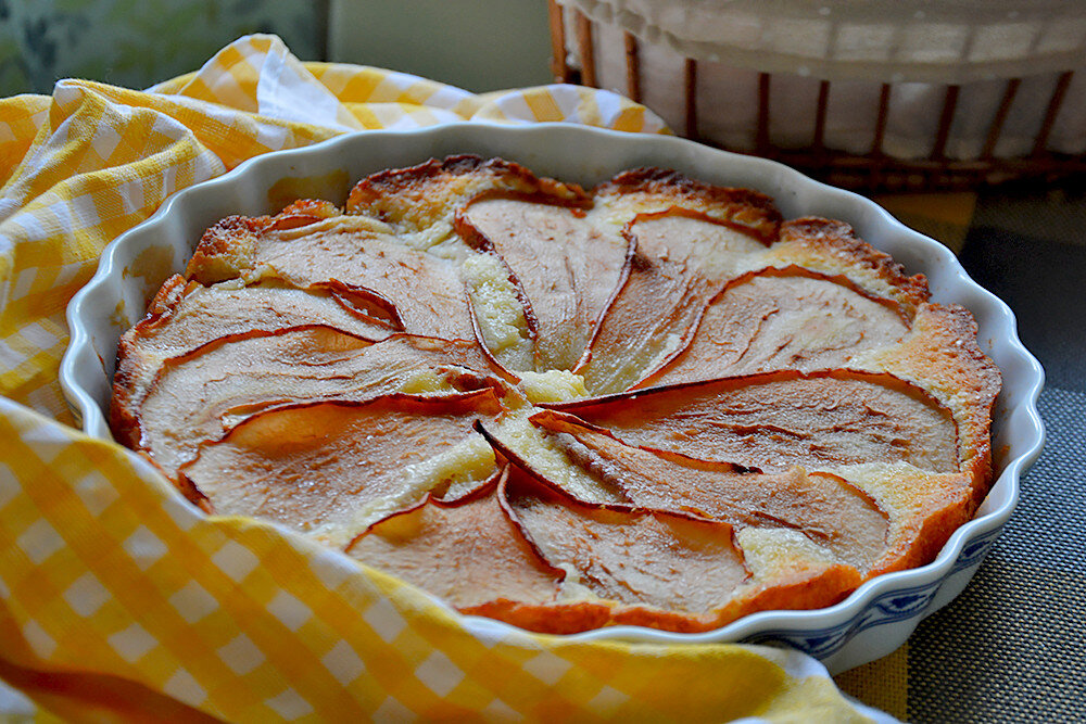 "Очень деликатный на вкус пирог с легкой бисквитной основой. Прекрасен как в холодом так и в теплом виде и идеально сочетается с шоколадным или ванильным соусом. Я хочу сразу сказать - бисквит крайне удачный ..он не мокрый и не сухой!" (Лиза Оливер) Автор фото Ирина Алексеева, рецепт Лизы Оливер. Ингредиенты: