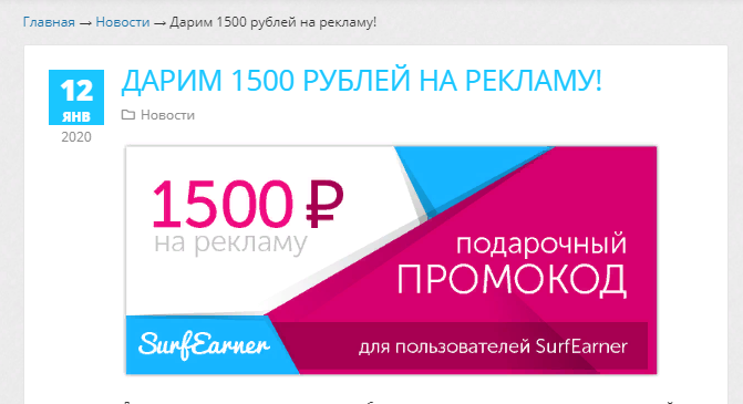 Как сайты разводят на Бабло. Привет мои дорогие читатели .Сегодня хочу написать о том как НАС разводят на деньги ушлые ребята . Речь пойдёт об одном сайте ,хотя схема одна на всех . В связи с тем что я много провожу времени в интернете , я зарегистрирован на стольки сайтах что не в сказке сказать ни пером описать , Так вот ,сегодня мне пришло одно чудесное письмо , с одного прямо таки расчудесного сайта . Называется сайт Surf Earner . И что-же в письме?, спросите ВЫ . А вот что , УРА нам 6 лет У нас !,5 миллиона пользователей . В связи с этим знаменательным событием МЫ ( тобиш они ) дарим каждому по 1500 руб на рекламный счёт . УРА халява воскликнул я и со всех Мегабайтных ног ринулся на сайт . И что-же я вижу ? Вот оно счастье - рядом , только руку протяни . Окей , по быстрому активирую код и по ходу обдумываю какую рекламу зарядить под эти деньги . Но как изветно из народной мудрости ,бесплатный сыр только в мышеловки . После активации промо-кода мне показали другое окно . В кот