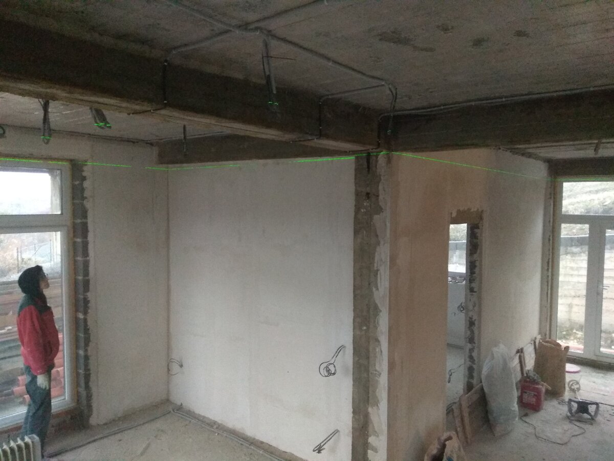 Добрый день, соратники) Сегодня речь пойдёт об оконных откосах. Хочу поделиться одним из вариантов оформления откосов, которым пользуюсь в данный момент. Основной объем штукатурки завершён, осталось оформить балки и откосы. Какие стоят задачи: Откосы штукатурим гипсовой штукатуркой с оклейкой гипсокартоном и установкой малярных уголков. Чтобы не повредить рамы, изготавливаем малку из обрезка ОСП с вырезами под раму и форточки. ОСП имеет фактуру и при протяжке будут борозды. Мне не принципиально, т.к. будет оклейка стеклохолстом и шпатлёвка под покраску. Приступим: 2. Оклеиваем откос гипсокартоном на гипсовую штукатурку по лазерному нивелиру, чтобы линия примыкания к раме была вертикальна, нахлест на раму делаем 5-7мм. 3. В примыкание между рамой и гипсокартоном вставляем малярный уголок, подрезая ту полку, которая вставляется в стык. Малярный уголок предотвратит растрескивания откоса в примыкании к раме. Стыки листов гипсокартона между собой заполняем штукатуркой и проклеиваем сер