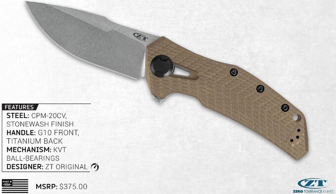 Zero Tolerance (KAI USA LTD.) добавили в свой каталог крупный складной нож под внутренним номером 0308, изготовленный из современных высококлассных материалов.