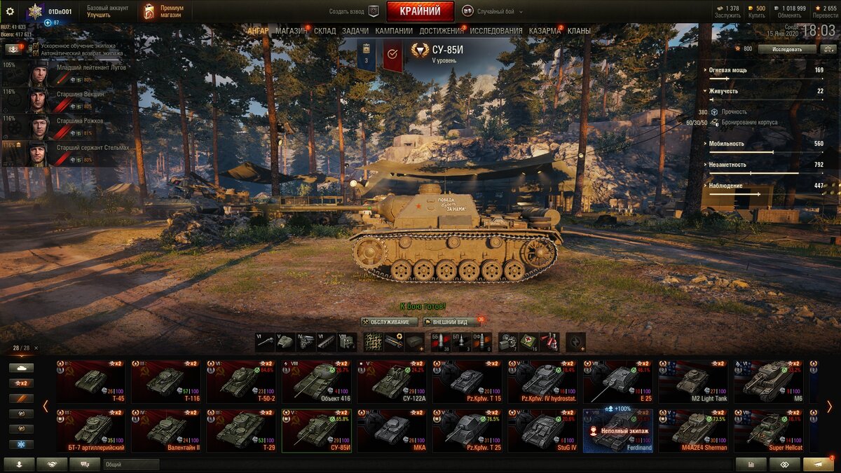 Добрый день Вернемся к нашим танкам . Хотел бы поговорить о одной интересной ПТ 5 уровня которую не часто можно увидеть в рандоме Да это Су 85и -Вариант на шасси трофейных PZlll путем установки неподвижной рубки . Одно время она продавалась в премиум магазине ,но потом разработчики вывели ее из продажи. Почему вывели ? да потому что это по сути такая же имба как и Е25 только на 5 уровне . Судите сами -орудие жесткий дырокол с ДПМ (урон в минуту 2300-2600 единиц) пробития хватает на любую 5 или 6 ку с головой. Скорость 50км /час . успеет занять выгодные позиции раньше чем туда приедет ст или лт успеют засветить ну наконец маскировка с сетью камуфляжем и прокаченым экипажем около 50 -52% . Ее вообще не видно . Вот по сумме этих всех показателей ВГ в свое время и вывело из игры это интересное ПТ. Ну а те кто успели купить -имбуют на этой ПТ досих пор