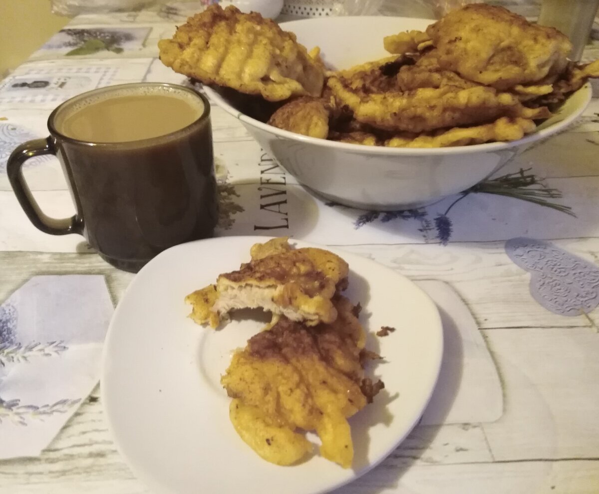 Порой детей очень трудно накормить мясом. Я нашла рецепт, который покорил всю мою семью включая детей. Это мясо в кляре. Дети шутя называют его "наггетсами". Готовлю очень часто расходится молниеносно и никогда не надоедает. Готовим мясо. Я беру либо куриное либо свиное филе. Сегодня Свинина. Итак свиное филе размораживаем нарезаем на стейки 1,5 см и тщательно отбиваем. Готовые кусочки перекладываем в миску и заправляем приправами по вкусу и обязательно подсаливаем, пусть оно немного настоится. Готовим кляр. В миску вбиваем 3 яйца солим перчим и тщательно взбиваем, добавляем стакан теплого молока. Добавляем муку и не перестаем помешивать, чтобы избежать комочков, когда тесто будет схоже с консистенцией сметаны кляр готов. Это примерно 1 ст. муки. Разогреваем сковороду с небольшим количеством растительного масла, обмакиваем наши мясные кусочки в кляре и отправляем жарится на среднем огне до золотистой корочки с каждой стороны. Это очень вкусно и сытно. Готовьте с удовольствием и п