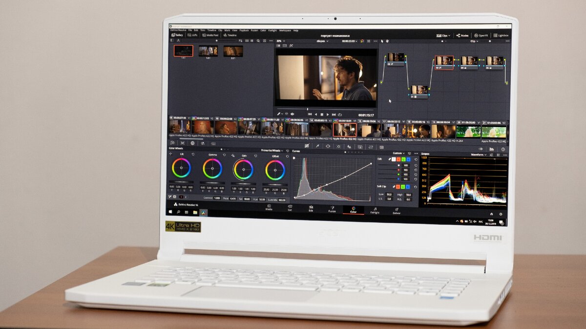 Естественно, речь идет о работе с видео в 4К, потому что FHD сейчас можно монтировать даже на микроволновке. Но 4К тоже бывает разное: стандартный Н264 100 Мбит/с и монтажные кодеки Apple ProRes и DNxHQ не вызывают абсолютно никаких проблем, но у меня есть исходники, способные поставить в тупик даже мощную десктопную рабочую станцию. Но и 4К Н265 10 бит 200 Мбит/с с межкадровым сжатием 60 к/с воспроизводится вполне уверенно даже с цветокоррекцией.