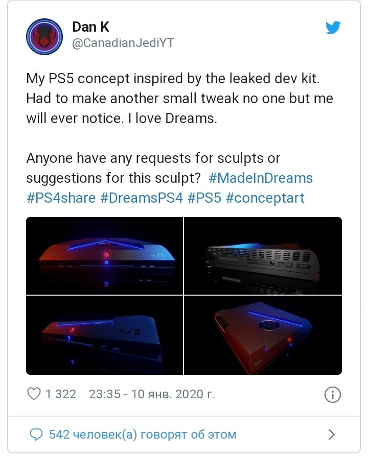 Компания Sony еще не раскрыла финальный дизайн игровой консоли PlayStation 5. В ожидании этого события один геймер решил пофантазировать на тему внешнего вида будущей консоли, создав концепт PS5, причем от всех прочих фанатских работ, которые можно встретить в интернете, эта отличается тем, что для ее создания использовался инструментарий, встроенный в песочницу Dreams для PlayStation 4. В интервью для IGN автор концепта Дэн Кул объяснил, что брал вдохновение из просочившихся фотографий девкита, стараясь при этом сделать внешний вид устройства более приятным для конечного потребителя. Самой же сложной частью модели по признанию Кула стали порты на задней панели, поскольку они должны были выглядеть максимально реалистичными. Он также отметил, что не считает себя опытным 3D-моделлером - автор в основном работает только с редактором Dreams, где сделана большая часть его проектов. Ознакомиться с концептом можно непосредственно в самой игре, найдя его в Dreamiverse по названию "PS5 Console