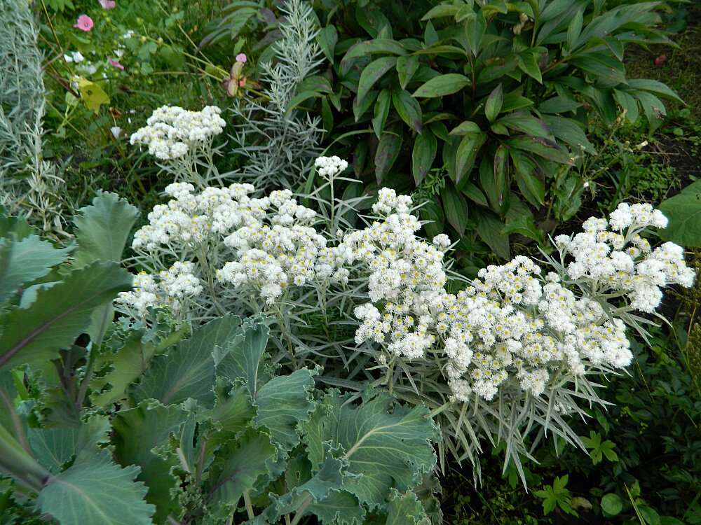 Не всегда самые лучшие растения в саду – это самые пышные и красивые. Частенько довольно простенькое растение может не просто украсить сад, но и стать его изюминкой, чем-то необычным. Главное – правильно его разместить. И сегодня речь об одном из таких растений – неброских, но оригинальных и потому незаменимых в саду - об анафалисе. Это растение из семейства Сложноцветные, род Анафалис имеет примерно 35 видов в основном травянистых многолетних растений, родиной которых являются районы с умеренным климатом в Европе, Северной Америке и Азии. Самый распространенный и встречающийся в наших садах - Анафалис жемчужный, родом из Северной Америки и Северо-Восточной Азии. Это многолетник со слегка опушенными побегами высотой до 40 см. Листочки у него небольшие, узкие и линейные, тоже опушенные, потому все растение кажется серебристым. За что оно мне и нравится – я вообще люблю растения с листьями серебристых оттенков. Цветки у анафалиса очень мелкие, они собраны в соцветия корзинки, а те