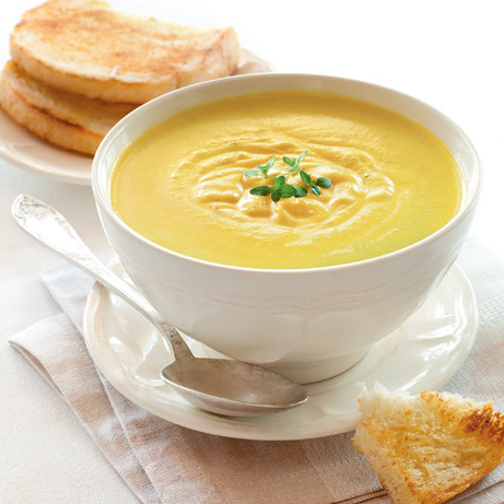 Горячие кремовые супчики — отличный вариант для тех, кто хочет согреться и почувствовать домашний уют в холодное время года. Тыквенный суп-пюре — один из простейших в приготовлении, он имеет приятный сливочный вкус и потрясающий аромат, нежную кремовую текстуру. Блюдо получается насыщенным и бархатистым, его с радостью едят взрослые и маленькие дети. И еще бы! В серые пасмурные дни так не хватает ярких солнечных красок — а здесь они у вас прямо в тарелке. Секрет правильного супа прост — надо выбирать тыкву не сладких сортов и внимательно следить за тем, сколько времени она готовится. Очень важно не переварить овощ, иначе тот станет безвкусным. Существует множество вариантов и способов приготовления этого бюджетного кушанья. Его можно сделать более насыщенным и питательным, сварив на мясном бульоне или добавив в него жирных сливок. Для того, чтобы быстро приготовить угощение для семьи из трех человек потребуется немного времени и небольшое количество продуктов: Чтобы супчик вышел