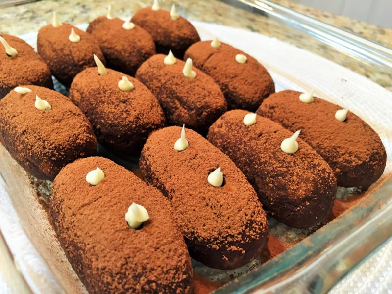 Ни один из прилавков кондитерских магазинов Советского Союза не обходился без потрясающе аппетитных пирожных «Картошка». Обсыпанное ароматным какао-порошком угощение из бисквитных крошек с нежным сливочным кремом действительно напоминало аккуратные клубни картофеля. Со временем классический рецепт попал в руки любящих экспериментировать кулинаров, благодаря чему в наше время можно найти десятки разных вариантов лакомства под одним и тем же названием. Мы же поговорим об оригинальной «Картошке» по ГОСТу СССР. Пошаговый рецепт пирожного «Картошка» по ГОСТу СССР 1)сахар 250 2)какао парашок 3 ст л 4)молоко 250 5)саахарначя пудра 6)бисквит или печенье (350 - 400 гр) 7) сливочное мкасло (100-120гр) Приготовление : 1)В небольшой сотейник насыпьте сахар, добавьте какао. Его количество зависит от ваших вкусовых предпочтений:чем больше какао, тем «шоколаднее» будет десерт.. Влейте стакан молока, отправьте сотейник на огонь. 2)Доведите до кипения, постоянно помешивая. При желании сахар мо