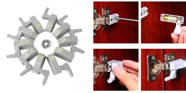 Лампа для шкафа Удобная подсветка для шкафов, которая крепится прямо на петлю и подсвечивает полки и ящики. Цена: от 415 рублей. Устройство для приготовления роллов Специальное приспособление, которое поможет приготовить аккуратные роллы в домашних условиях. Откройте прибор, положите в половинки рис, хорошо утрамбуйте его с помощью стержня в комплекте. Затем им же сделайте небольшое углубление в рисе и положите туда начинку. Закройте устройство, вставьте стержень в специальное отверстие сверху и выталкивайте им получившийся ролл. Можно есть сразу или завернуть в нори. Цена: 310 рублей. Плоская фляга Удобная фляжка, которая свободно помещается в карман. Приятный бонус от продавца: в комплект входит миниатюрная металлическая воронка, которая поможет заливать напитки в узкое горлышко ёмкости. Цена: 433 рубля. Круговой нож Необычный нож для быстрой нарезки зелени, овощей, пиццы и многого другого. Цена: 393 рубля. Диспенсер для зубочисток Симпатичный диспенсер в виде окованного же