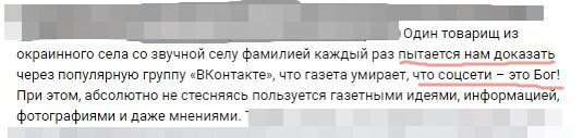 По поводу "умирания газеты" скажу, что если главный редактор позволяет себе делать в газете заявления, подобного рода, о том что где-то, кто-то, что-то пишет, то, видимо, про