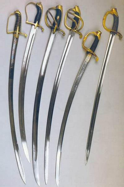 Сабля Самым почтенным долгожителем в истории русских клинков является сабля. Сабли впервые появились на Руси в IX веке и уже к XIV веку стали самым популярным и распространенным армейским холодным оружием, вытеснив полностью мечи. Отметим, что на юге Руси сабли появились раньше и прижились быстрее, нежели севернее, ближе к Новгороду. С XV по XVII век сабли служили основным оружием стрельцов, казаков, воинов конницы. В XVIII веке сабля становится личным оружием легкой кавалерии и офицеров практически во всех родах войск. В конце 1881 году в армии России сабля была заменена на шашку. Сохранилась она лишь в гвардии в качестве парадного оружия, а также как оружие ношения вне строя у офицерского состава некоторых родов войск. Пехотные и кавалерийские сабли Слово «сабля» происходит от венгерского szabni — «резать». Сабля состоит из клинка и рукояти. Клинок — изогнутой формы, с ровной режущей кромкой на выпуклой стороне. Рукоять могла быть деревянной, костяной, оловянной, кожаной и так