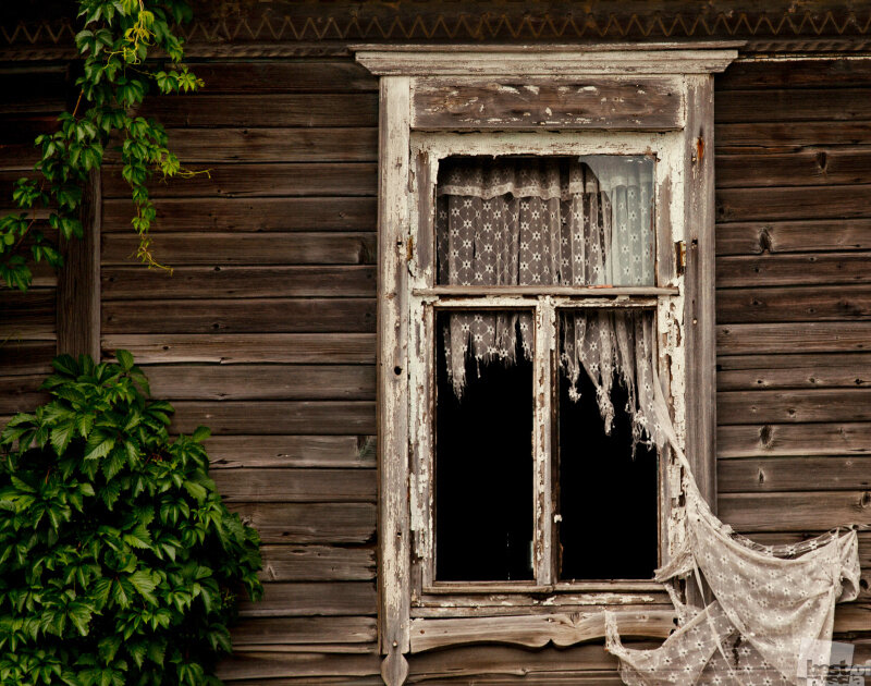 Толик вышел к фасаду и принялся изучать обстановку: три окна, два из них, словно раскрытые старческие рты, зияли чернотой, по краям торчали мутные стеклянные зубья, а третье – центральное, наглухо закрыто двумя ставнями и прибитыми невпопад досками. Сам дом почти не покосился, но чувствовалось, что он - старинный. Наличники – с прихотливой резьбой в виде лебедей - весьма необычные и выполненные со вкусом. Хотя и потрепало их время, они разительно отличались от невзрачных узоров на соседних домах.