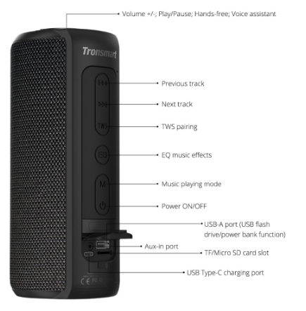 Колонка Tronsmart T6 Plus, которая порадует вас громким и качественным звуком. Поставляется она в такой коробке, на ней можно увидеть