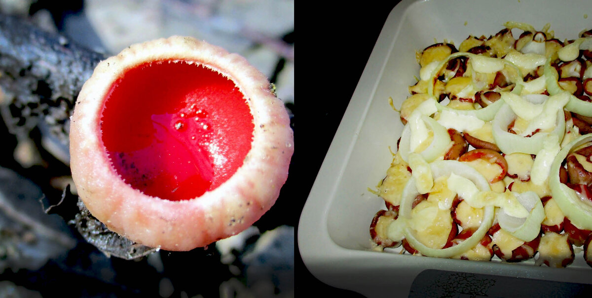 Здравствуйте, друзья. Одна моя знакомая по социальным сетям, большой знаток грибов из Подмосковья, собирала саркосцифу австрийскую в конце декабря. Сам факт, что саркосцифа вновь выросла в декабре потрясает! А великолепный рецепт приготовления алых грибочков в духовке с сыром, который знает эта добрая женщина, вызывает прилив зверского аппетита. Вообще-то это весенние грибы. Нынешней зимой у нас в Санкт-Петербурге и Москве погода стоит осенняя, снега нет и плюсовая температура. Меня буквально потрясло сообщение из Московской области. Там вовсю пошли саркосцифы австрийские. Фото от 24 декабря 2019 г. Саркосцифа растёт обычно весной (первые грибочки можно узреть уже в конце февраля) по май. У себя в Ленинградской области вижу её довольно часто на валежнике, лиственом опаде. Алые чашечки красивы необыкновенно, но никогда их не собирала, потому что не встречала больших популяций. Они съедобны и вкусны, если их правильно приготовить. Наталья опытный грибник, да еще и хорошо готовит. В