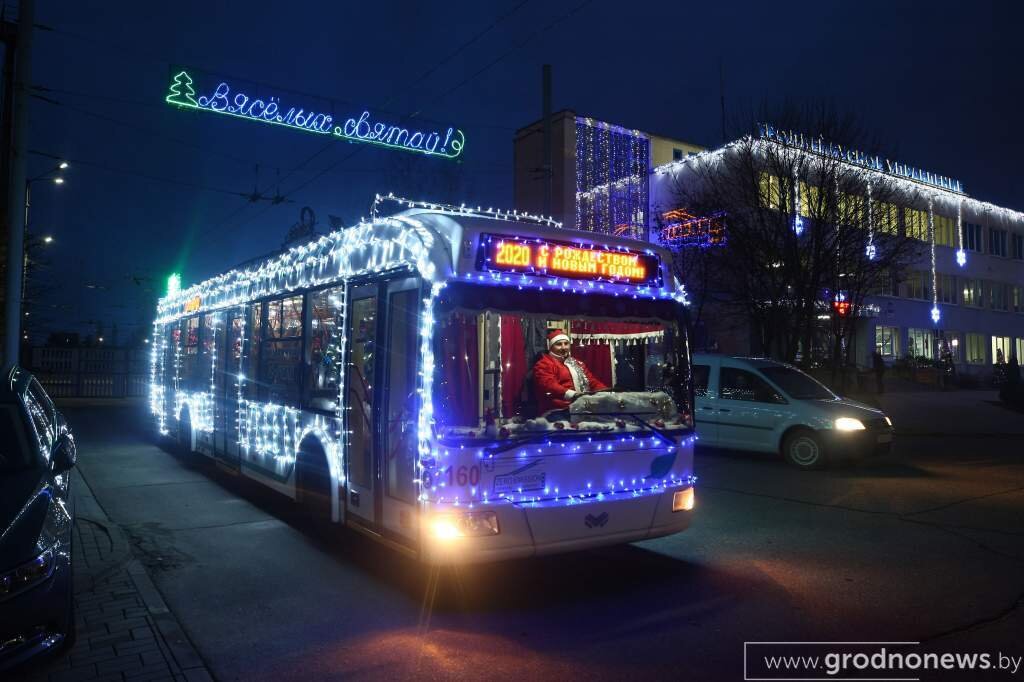 В гирляндах и игрушках. Как праздничный троллейбус возит пассажиров