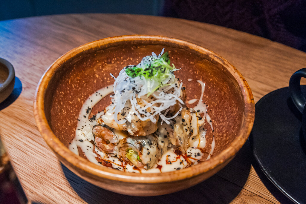 Начать хотелось бы с ресторана Gills, который я смело пометил звёздами от Алькопончика и готов его назвать одной из лучших вариаций на японскую тематику. Многие пишут, что у нас суши не суши, роллы не роллы и вообще всё не так. В этом же заведнии стараются следовать модным тенденциям, а роллы в меню авторские. Так что тут вы не найдете привычной Филадельфии или Калифорнии с соевым соусом, который своим ядреным привкусом стирает все рамки отличий, превращая любой ролл в пропитанный солоноватой жидкостью рис, с какими то там наполнителями. Здесь всё продумано. Ну и в качестве главной позиции я хочу выделить ролл лосось, дорадо, лакедра в темпуре. Ролл без риса, но ему это к лицу. Небольшой, но долгоиграющий. Отлично подобранный соус и довольно приятная композиция, а темпура столь тонка и нежна, что просто теряется на фоне. В итоге именно этот ролл запомнился по итогам года больше всего. Весь отзыв о ресторане Gills.