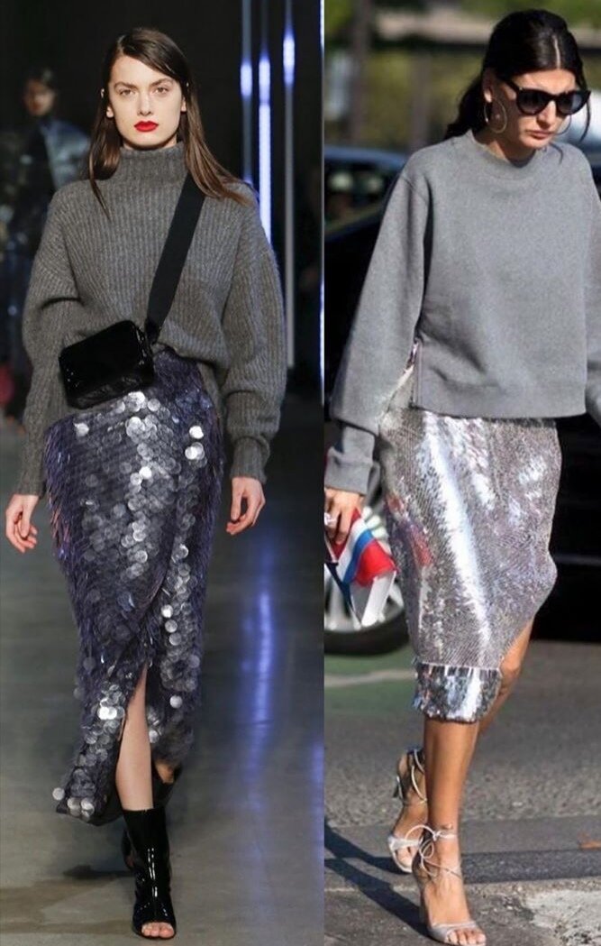 Приветствую всех на моём канале! Новый год прошел, хотя еще Рождество нас всех ждет впереди. Но наряд то покупался к Новому году весь блестящий. Мои многие знакомые приобретали или яркие блестящие платья, или блестящую юбку, или просто блестящую сумку для торжественности. А теперь куда девать эту юбку, многие почему-то думают, что эту юбку теперь можно надеть только на следующий Новый год. Девочки, это заблуждение, сейчас очень модно все блестящее и сверкающее. Просто надо добавить к этим блестящим вещам что-то такое, чтобы смотрелось не так празднично и пафосно. Естественно, что если вы наденете к такой юбке блестящие босоножки или туфли, то будет очень торжественно и нарядно и на каждый день такой наряд уже не подойдет. А, если допустим к такой юбке надеть обычные ботильоны или обычные туфли?! Я просто уверена, что образ уравняется и одна блестящая юбка в целом комплекте будет смотреться просто шикарно. Кстати, ботильоны могут быть как на высоком, так и на низком ходу. Ну, а е
