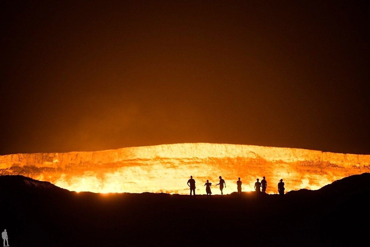 Дарваза в переводе с арабского означает «Врата» так именуют его местные жители этот необычный газовый кратер. Размер Врат ада относительно не большой и составляет порядка 60 метров в диаметре и ~20 метров в глубину. История происхождения кратера берет свое начало из далёкого 1971 года. Советские геологи наткнулись на скопление подземного газа. Было принято решение начать разработку подземного месторождения. В результате бурения, геологи наткнулись на подземные пустоты, а вскоре после этой находки буровая вышка ушла под землю вместе с рядом расположенной техникой. К счастью пострадавших не было. После данного инцидента вредные газы продолжали выходить на поверхность и отравлять близлежащую среду. Чтобы исправить данную проблему было принято решение поджечь кратер. По началу геологи предполагали что пожар через пару дней потухнет, но они ошиблись. Кратер продолжает поддерживать огонь и по сей день. Недалеко от Дарваза существуют ещё два месторждения с похожей проблемой. В отличие от Горя