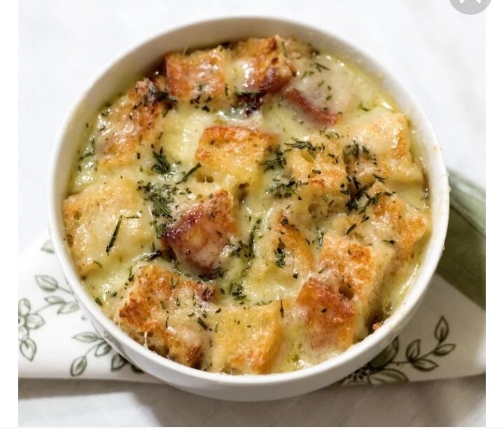 Иногда просто хочется съесть что-то подобное. С неделю назад я пришёл домой с гостей, а на утро в рот ничего не лезло. Есть хотелось а не моглось. Хорошо отметил днюху у друга. Вот мне женка и приподнесла такой супчик. Поел, аж жить захотелось. А сейчас вмпомнил и решил с вами поделиться этим рецептом. Вернее ни я, а моя любимая. Что нам надо : 60 грамм сливочного масла 6 средних луковиц Оливковое масло 3 столовые ложки Тимьян 2 штучки Поллитра красного сухого вина 6 зубчиков чеснока Соль и перец чёрный молотый по вкусу. 1 литр мясного бульона Гренки и петрушка. Начинаем готовить Режем на доске лук, тонкими полукольцами. Берём сковороду, желательно побольше и глубже, наливаем в неё оливковое масло и ложим сливочное. Нагреваем. Когда масло начнёт потрескивать, выкладываем туда лук, тимьян. Солим и перчим. Готовим на огне выше среднего до тех пор пока не появиться золотистый оттенок, затем накрывает крышкой и готовим ещё на медленном огне 10 -