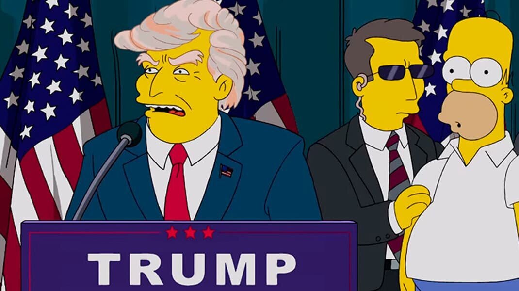 Год: 1999-2000 В этой серии Барт Симпсон попадает в будущее, где видит свою сестру Лизу на посту президента Америки. В одном из своих интервью она говорит о том, что Дональд Трамп оставил стране бюджетный кризис. То есть, он был президентом США до Лизы. Самого Трампа в этой серии не показывают. В 2015 году в эфир вышел эпизод, в котором Трамп выступает на публике. Отметим, что президентом в настоящем он стал в 2017 году. Кадры в мультфильме практически идентичны реальным событиям. 2. Компания Walt Disney купила 20th Century Fox
