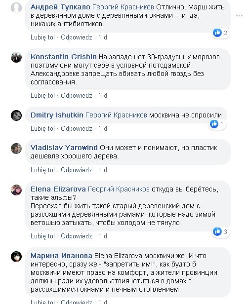 Интересный тут спор возник в посте у блогера Перископа в фэйсбуке. Сергей выложил фотографии пластиковых окон в деревянных домах из Костромской области с наличниками с нейтральной подписью. Куча комментариев что так и надо, пластик дешевле и практичнее. Когда я искренне возмутился, что ну да что за ужас вы творите, меня массово заклевали, припомнили моё место проживания "типа, что вы из своей Москвы учите нас жить".