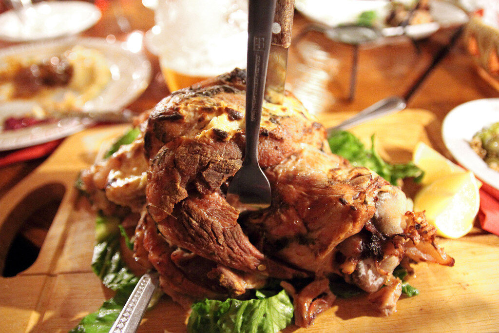 Варим на небольшом огне при плотно закрытой крышке рульку или ножки в течение 2 часов. Ничего не трогаем, не размешиваем, наслаждаемся отдыхом и праздником.