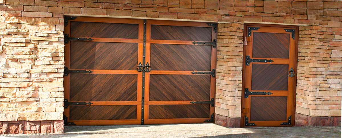 Как правило такие гаражные ворота представляют собой два подвижных полотна. По желанию они могут открываться и наружу, и во внутрь. Изготовлены они могут быть из самых различных материалов. С точки зрения конструкции бывают «глухие» створки, с калиткой, с разнообразными декоративными элементами и проч.