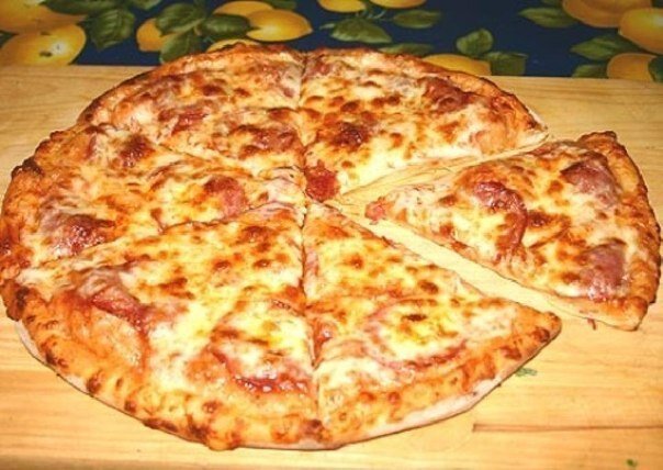 Иногда нет времени на дрожжевое тесто, а пиццы хочется прямо срочно. Меня в таком случае : 0,5 л. кефира, 2 яйца, 2 столовые ложки растительного масла, 0,5чайной ложки соды, 0, 5 чайной ложки соли и муки сколько возьмет тесто (чтобы не липло к рукам). Раскатываем сверху начинку (что есть в холодильнике) и в духовку. Попробуйте получается даже лучше чем с дрожжевым! Всем приятного аппетита!