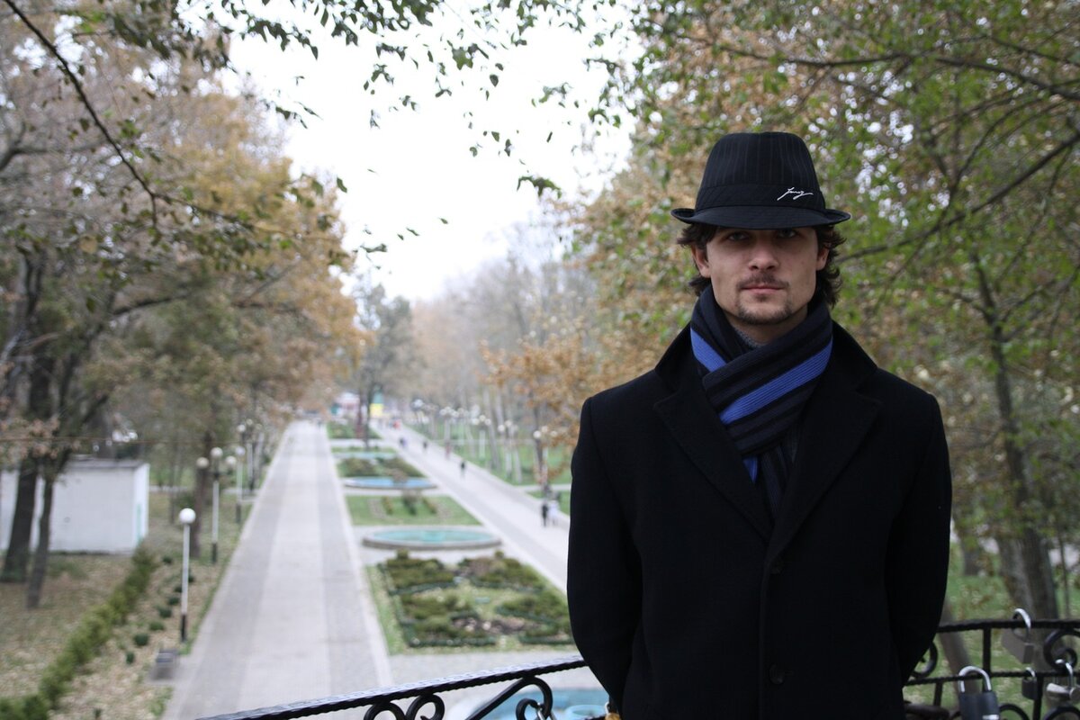 Это был высокий человек в черном пальто, укутанный огромным шарфом, в темных брюках и до блеска начищенных классических туфлях. На голове он носил черную шляпу, из-под которой выбивались пышные каштановые волосы. Лица его я не увидел, только презрительную улыбку, обрамленную аккуратно выбритой бородкой. В левой руке он держал папку с какими-то бумагами разного цвета.