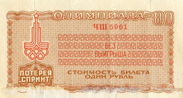 Целью проведения спортивных лотерей в СССР являлось развитие массовой физической культуры и спорта в стране — многие спортивные сооружения в то время были построены или реконструированы на доходы полученные от их проведения * Самой успешной олимпийской игрой стала денежно-вещевая лотерея «Спринт», использующая формат лотереи без тиражей, выигрыш в которой указан в запечатанном конверте. Прообразом послужила Всероссийская книжная лотерея а также «Лоз-ин-плик» лотерейный билет в конверте), проводимая в Социалистической Республики Румынии. Подобные же лотереи были в Венгерской Народной Республике («Конвертная лотерея»), в Финляндии («Туз»), в Федеративной Республике Германии («Жребий в конверте») и в некоторых других странах. В лотерее «Спринт» кроме денежных выигрышей разыгрывались также автомобили и мотоциклы. «Спринт» стал одним из самых массовых предолимпийских мероприятий. Билеты были двух типов – по 50 копеек и по 1 рублю. И по одному, и по другому билету можно было выиграть автом