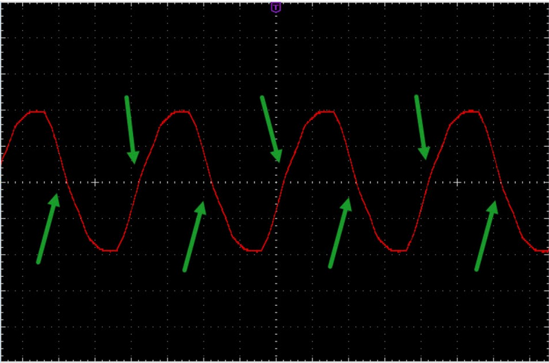 На рисунке показана синусоидальная волна с частотой 50 Гц. Для построения диммера важны точки нуля: Далее на рисунке сама схема диммера: Итак, тут будем использовать импульс пересечения нуля в качестве триггера для главной цепи управления. Это легче понять, просмотрев код Arduino и выходную волну. Радиоэлемент IC3 - тиристор BT138. Нагрузка включена последовательно с тиристором и линией переменного тока, поэтому он определяет количество энергии, которое должно быть подано на нагрузку. Радиодетали R4, R5 и C2 реализуют схему демпфирования для IC2, а C1 и R7 создают схему демпфирования для IC3. Эти детали помогают устройству быть совместимым с различными типами нагрузок, такими как индуктивные. Оптрон IC2 является компонентом обеспечивающим надлежащую гальваническую развязку между цифровой стороной и линией переменного тока 220 В. Выбранный тип - MOC3021. Также можете использовать другие аналогичные, но будьте осторожны, чтобы не использовать детали со встроенным детектором