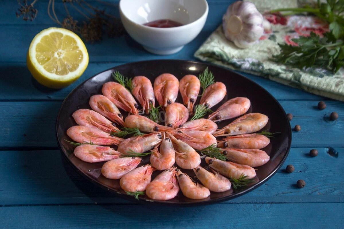 Креветки используются в салатах. Из них готовят закуски и вкусные супы. Морепродукт всегда кстати, так как обладают целым рядом полезных свойств. Как варить варено-замороженные или замороженные креветки? Рекомендую некоторые рецепты. Думаю, каждой хозяйке пригодятся. На заметку. Креветки малокалорийны. В составе присутствует огромное количество витаминов и микроэлементов, белок. Морепродукт недаром ценится при диетическом питании. Известно, что люди, которые регулярно употребляют в пищу рыбу и морепродукты, живут дольше остальных. Варено-замороженные креветки Время приготовления 10 минут Калорийность 88 ккал/100 г Ингредиенты (4 порции) · лимон – 0,5 шт; · креветки – 1 кг; · душистый перец – 3 г; · вода – 2 литра; · соль – 90 г; · гвоздика – 2 шт; · укроп сушеный – 2 г; · перец горошком – 15 шт Покупая креветки, обратите внимание на некоторые особенности. Они должны быть целыми, без повреждений, примерно одинакового размера. Ледяной шар не должен быть слишком толстый, иначе заплат