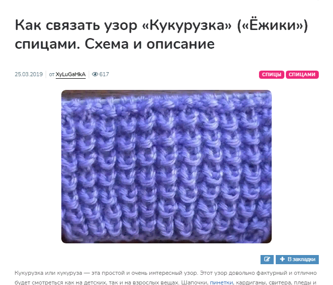7 место. Как связать узор «Кукурузка» («Ёжики») спицами. Схема и описание