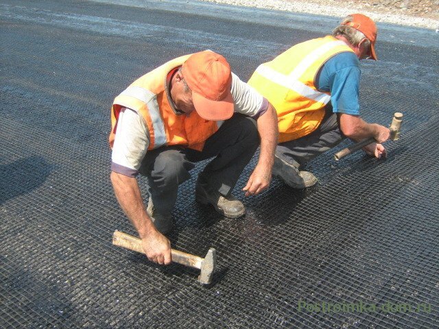 Геосинтетические материалы в дорожном строительстве обязательны к применению при прокладке дорого в районах вечной мерзлоты, пустынях, на торфяниках, болотах, в иных тяжелых геологических условиях, а так же в грунтах техногенного происхождения. Применение геосентетических материалов при этом серьёзно уменьшает размер затрат на подготовку местности для строительства дорог для автотранспорта, так как отпадает необходимость в проведении некоторых работ достаточно трудоёмких и дорогих, например понижение уровня грунтовых вод или укрепление откосов. Геосетки, георешётки, а также геотекстильное полотно нетканное применяется в основном для армирования полотна дорог, так как изготовляются из очень прочных полимеров, обладающих прекрасными эксплуатационными качествами. Эти материалы могут выполнять разделительные и армирующие функции, воспринимая при этом точечную нагрузку и распределяя её по самой широкой площади своей поверхности. Такая способность позволяет снизить на поверхности самого до