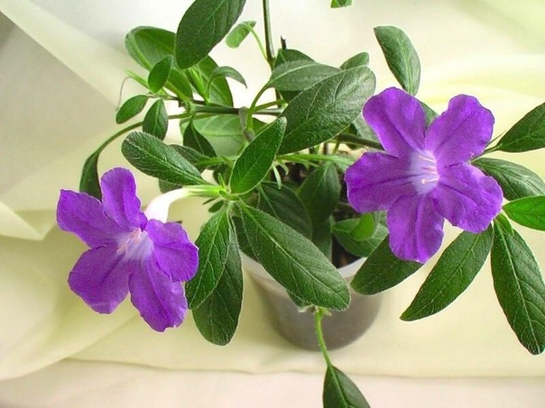 ✅Температура: Летом оптимально около 22-24°С. Более высокую температуру руэллия не любит, листья усыхают, и стебли снизу оголяются, можно сказать, растение выгорает от жары, хотя при этом может цвести. Зимой оптимальная 18-20°С, минимальная 14°С. Защищайте растение от жара батарей. ✅Освещение: Руэллия светолюбива, но весной и летом требует притенения от полуденного солнца. Весной и летом лучше всего растет на восточном подоконнике. Чтобы цветение продлилось дольше, осенью устраивают дополнительно освещение, чтобы световой день составлял не менее восьми - девяти часов. ✅Полив: Обильный летом, почва должна быть все время слегка влажноватой внутри горшка, но просыхать сверху. Зимой полив очень умеренный, но так как растения содержаться в тепле, почва не должна пересыхать полностью. ✅Удобрение: С апреля по август руэллию подкармливают жидким удобрением для комнатных декоративно-цветущих растений через каждые две недели. Не усердствуйте с органическими удобрениями - это понижает продукт