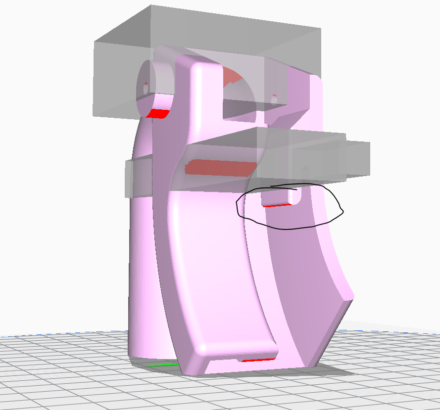 Сразу хочется сказать, что данная функция все еще находится в разделе экспериментальное, так что к данной функции нужно относится с осторожностью... Зачем? Прежде чем использовать, надо понять зачем оно вообще надо. Эта функция обычно нужна для поддержек в труднодоступных местах, например есть труба и где-то на высоте она изгибается. Надо чтобы поддержки как-то пролезли внутрь, огибая небольшие изгибы. Везде, куда не дотягиваются обычные поддержки от стола, можно попытаться протянуть древовидные поддержки. Какие проблемы? Плохая адгезия на первом слое. Слишком маленькая площадь соприкосновения может привести к отрыву поддержки в случайный момент времени. Есть два способа попытаться нивелировать данный недостаток, это подложка или кайма. Это позволит увеличить площадь соприкосновения модели, но подложка(raft) может негативно сказаться на качестве первого слоя. Что можно настроить? Пример Имеется вот такая деталь, есть проблемное место, которое я обвел черным цветом(серые параллелепипед