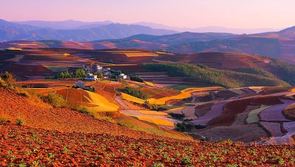 Красные почвы Дунчуаня в долине Лося недалеко от Куньмина являются одним из многих удивительных мест на Земле. Это огромный участок красных почв с характерными чертами района, находящегося на Юньнаньском высокогорном плато. Благодаря своему уникальному цвету Красные почвы Дунчуаня с каждым годом все сильнее и сильнее привлекают туристов и фотографов. Описание Провинция Юньнань находится в теплой и влажной климатической зоне на юго-западе Китая. Земля здесь богата железом, и поэтому в некоторых местах в результате окисления и отложения осадков почвы приобретают необычный красно-коричневый цвет. Красные земли Дунчуаня – это большой район недалеко от города Синьтянь, который расположен к северо-востоку от Куньмина. Каждый год в период с сентября по декабрь красные почвы вспахивают, подготавливая их к посеву. Голубое небо, белые облака и постоянно меняющие свои оттенки красные почвы создают неописуемые словами по красоте пейзажи. К этим краскам добавляются цветущие луга