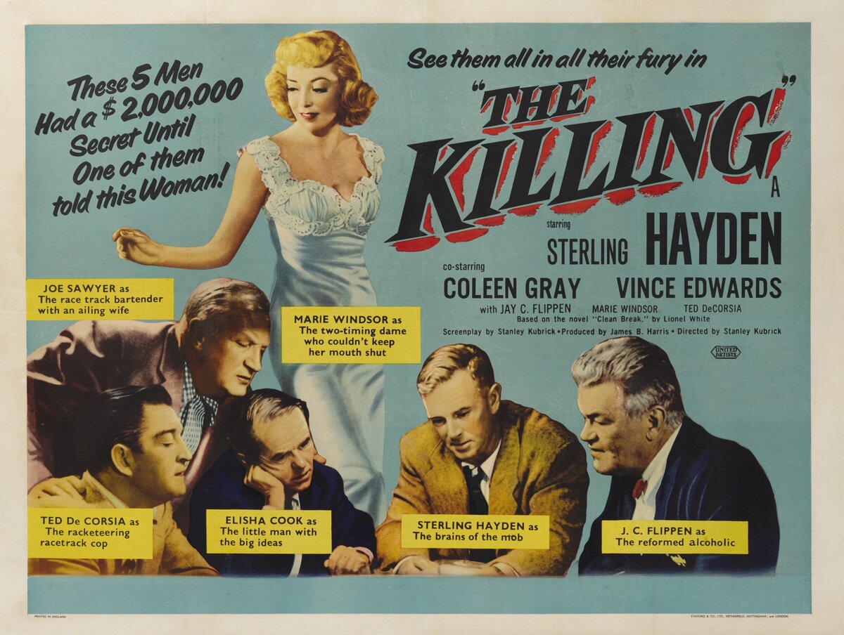 The Killing, жаргонный термин, означающий «большой куш». «Убийство» (The Killing) 1956 — классический чёрно-белый фильм великого Стэнли Кубрика, снятый в 1956 году по роману Лайонела Уайта. Традиционные атрибуты жанра нуар приправлены здесь многочисленными новаторскими приёмами. Несмотря на восхищённые рецензии и отзывы критиков, фильм не имел финансового успеха. Хотя жанр нуар и достиг рекордной популярности в 1940 году, сюжет, режиссёрские приёмы и кинематографичность картины «Убийство» вызвали возрождение этого жанра. Среди поздних нуаров «Убийство» выделяется тем, что вместо зыбкой атмосферности, упор сделан на документально точном воспроизведении действа, которое представлено зрителю в мельчайших технических подробностях. Кинокритик Джонатан Розенбаум считает, что из всех фильмов Кубрика этот «наиболее совершенно продуманный и исполненный». Сейчас картина считается одной из лучших картин в этом жанре. Высочайшие оценки поставили «Убийству» Орсон Уэллс и Бернардо Бертолуччи, а об