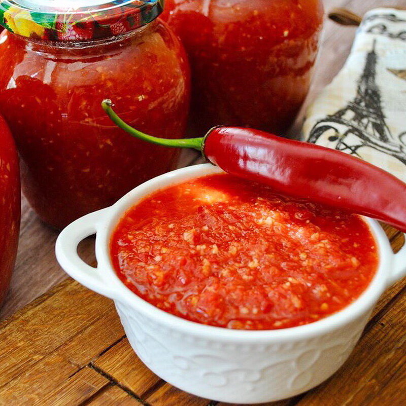 4. Готовую аджику разложить по стерилизованным банкам и закатать крышкой.
