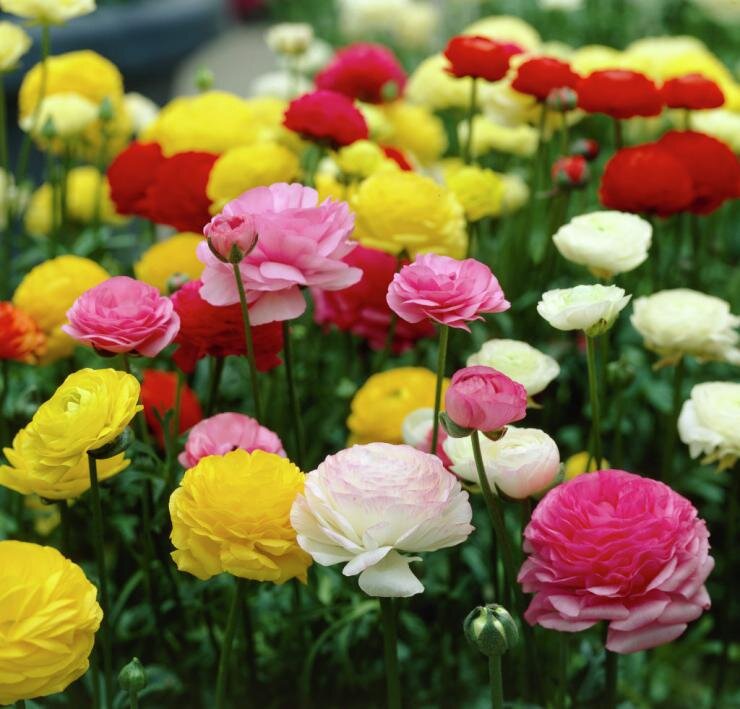 Нежные и изящные, самой разнообразной окраски, ранункулюсы очень похожи на маленькие пионы или розочки. Этот новый цветок появился у меня случайно. Как-то раз прочитала в каталоге неизвестное доселе мне название – ранункулюс (лютик азиатский). Решила выписать, и, надо сказать, ни разу не пожалела об этом. Аккуратные, невысокие кустики в высоту не превышают 50 см. Клубеньки длиной 2—2,5 см, чем-то похожи на гусиную лапку. Высадка клубней