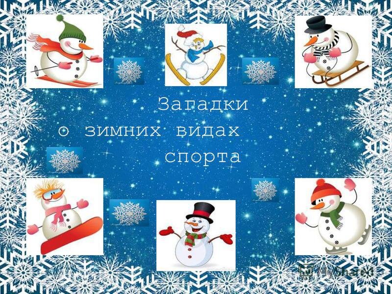 Загадки для всей семьи. Вопрос не лёгкий у меня, Как это называют, Когда спортсмены на санях По жёлобу съезжают? (Бобслей) *** Во дворе с утра игра, Разыгралась детвора. Крики: «шайбу!», «мимо!», «бей!» - Значит там игра – …. (Хоккей) *** Две новые, кленовые Подошвы двухметровые. В них поставил две ноги — И по большим снегам беги! (Лыжи) *** Две полоски на снегу Оставляют на бегу. Я лечу от них стрелой, А они опять за мной. (Лыжи) *** Льется речка – мы лежим, Лед на речке – мы бежим. (Коньки) *** Деревянных два коня Вниз с горы несут меня. Я в руках держу две палки, Но не бью коней, их жалко. А для ускоренья бега Палками касаюсь снега. (Лыжи) *** Вокруг глубокий снег лежит, А он легко поверх бежит. Лишь с колеи сойти нельзя. Кто мчится к финишу, скользя? (Лыжник) *** Каждый вечер я иду Рисовать круги на льду. Только не карандашами, А блестящими… (Коньками) *** Спорт на свете есть такой, Популярен он зимой. На полозьях ты бежишь, За соперником спешишь. (Лыжные гонки.) *** Тру