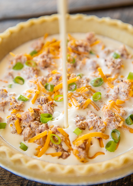 Все любят этот вкусный пирог с заварным кремом! Ветчина, сливочный сыр, сыр чеддер, вустерширский соус, зеленый лук, острый соус, сметана, яйца, молоко, корочка для пирога. Этот пирог безумно хорош! Я обычно делаю два пирога за раз. ИНГРЕДИЕНТЫ: 1 чашка нарезанной кубиками ветчины 60 г. сливочного сыра 1/2 стакана сыра чеддер 1 зеленый лук, нарезанный 1/4 ч. л. острого соуса 1/2 ч. л. вустерширского соуса 3 столовые ложки сметаны 1 чашка густых сливок 3 яйца 1 (21 см.) глубокая корка для пирога ИНСТРУКЦИИ: