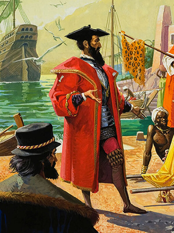 Довольно удивительная ирония - португальцы так долго сражались за свои земли с арабами, изгнав их наконец со своей земли - отправлялись в далекие путешествия на другой конец света, чтобы снова повстречать арабов на своём пути. Дело в том, что арабские купцы и мореплаватели давно чувствовали себя свободно на восточном побережье Африки, имея большое влияние на местных правителей и распространяя свою веру. Васко да Гама и его флот добрался до Мозамбика, но в виду сильного арабского влияния, наладить отношения не получилось с местным султаном. Побывали португальцы и в Момбасе, по пути захватили арабский корабль, разграбив его, а членов команды захватили в рабство.