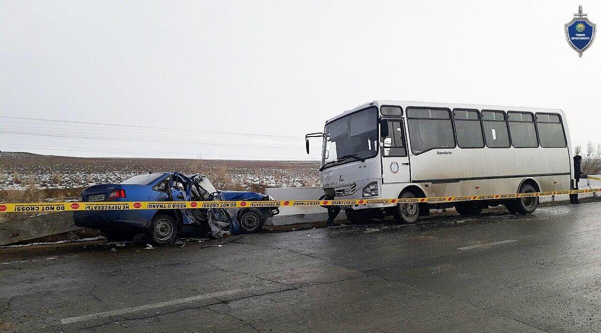 Узбекистан, Ташкент – АН Podrobno.uz. В МВД раскрыли подробности аварии между автомобилем Nexia и пассажирским автобусом Isuzu Навоийского горно-металлургического комбината, сообщает корреспондент Podrobno.uz. "5 января, примерно в 06:45, 46-летний водитель автомобиля Nexia, в котором находилось пять пассажиров, на 60-м км автомобильной дороги "Навои-Зарафшан" потерял управление и выехал на встречную полосу. Здесь Nexia столкнулась с пассажирским автобусом Isuzu Навоийского горно-металлургического комбината", – сообщили в Следственном департаменте МВД.