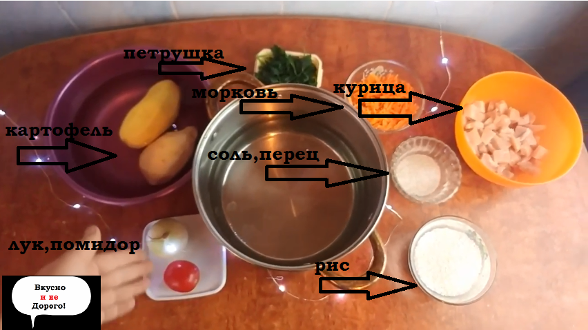 Очень ароматный, согревающий а самое главное вкусный и быстрый суп, практически на каждый день. Такой суп я люблю готовить когда хочется согреться в эту холодную зиму, при этом времени на готовку борща или рассольника нет. Ко мне как то в один день, совсем неожиданно приехали родственники, они были с дороги и поэтому мне нужно было быстренько что-то приготовить, я подумал что суп будет идеальным вариантом, так как им хотелось чего нибудь жиденького и горячего. Ладно не буду вас томить долгими рассказами а просто напишу рецепт, думаю он вам тоже очень понравится! Вам потребуется: Картофель 400 грамм Лук - 1 штука Помидор - 1 средний Морковь - 1 штука Рис - пол стакана (80 грамм) Куриное филе (грудка) - 400 грамм Томатная паста - 1 ст.л Зелень - (для украшения супа) Соль, сушеный гранулированный чеснок - по 1 ст.л Перец черный душистый - 0.5 чайной ложки Чистая вода - 2 литра. Первым делом наберите на кастрюлю 2 литра чистой воды и поставьте ее нагреваться на плиту. Теперь