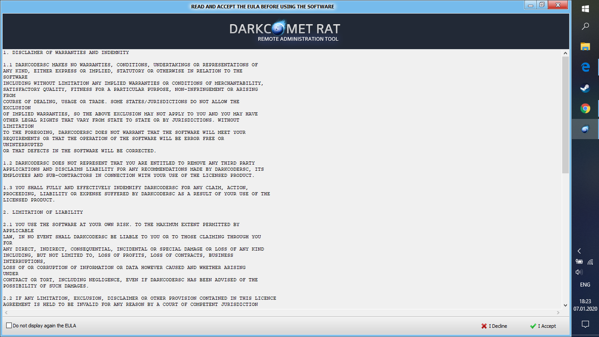 Мы это делали в целях проверки компьютера. Но многие это делают в мошеннических целях, такого делать нельзя! 1. скачиваем darkcomet 2. запускаем приложение darkcomet 3. принимаем лицензионное соглашение 4.нажимаем на socket/net 5. уже нажимаем на add port to listen 6. listen port ставим 1604 7. нажимаем на darkcomet rat 8. наводим курсор на server module, нажимаем full editor 9. нажимаем на network sittings вводим свой ip, и нажимаем add 10. нажимаем на свой ip левой кнопкой мыши 11. потом нажимаем на hosts file, вводим свой ip и нажимаем add line, нажимаем на ip который добавили 12. нажимаем на build the stub, и всё готово 13. перекидываем программу жертве 14. когда жертва откроет файл у вас это появится то в кладке users появится пользаватель, нажимете на пользывателя и творите с ним что хотите :) (я люблю убирать рабочий стол, и открывать cd привод)